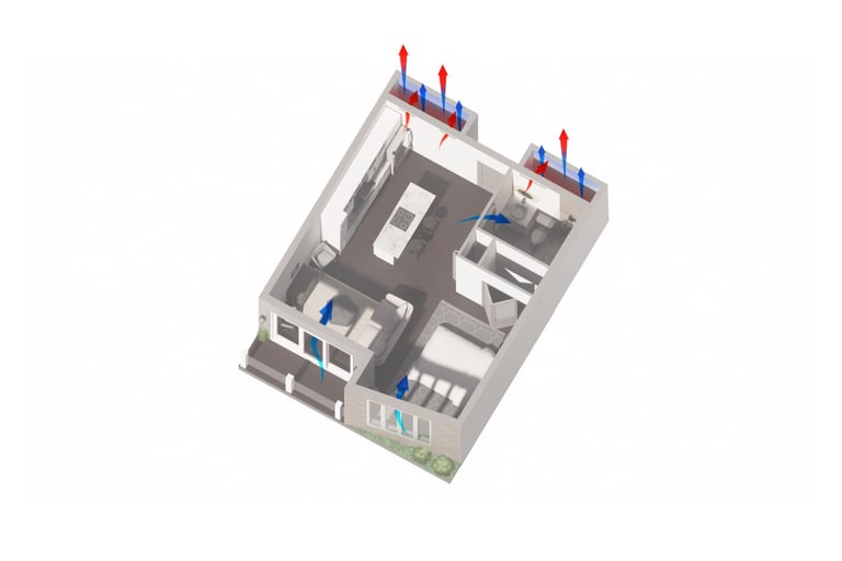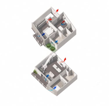 Achieve natural ventilation through an open floor plan and operatable windows on opposite sides of the home.