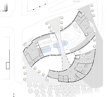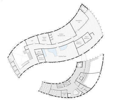 In the museum, the level incorporates various research labs, offices and access points to the aquarium tanks. In the academy level 2 has multiple classrooms along with the upper level of the auditorium and the balcony of the event space.
